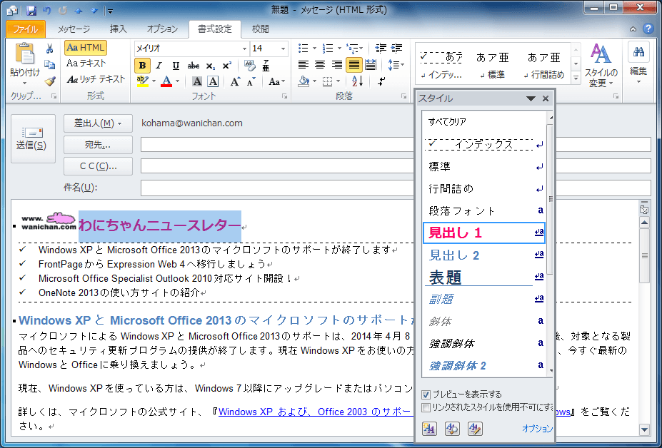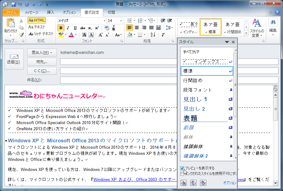 - あらかじめ、スタイルウィンドウのプレビューを表示するようにしておくことで、スタイルがわかりやすくなります。