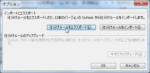 - [オプション]ダイアログボックスにて、[仕分けルールをエクスポート]ボタンをクリックします。