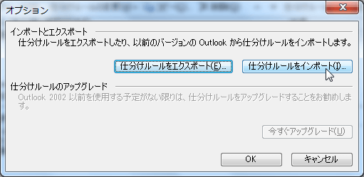 - [オプション]ダイアログボックスにて、仕分けルールをインポート]ボタンをクリックします。