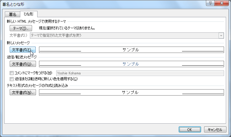 - [署名とひな形]ダイアログボックスの[OK]ボタンをクリックします。