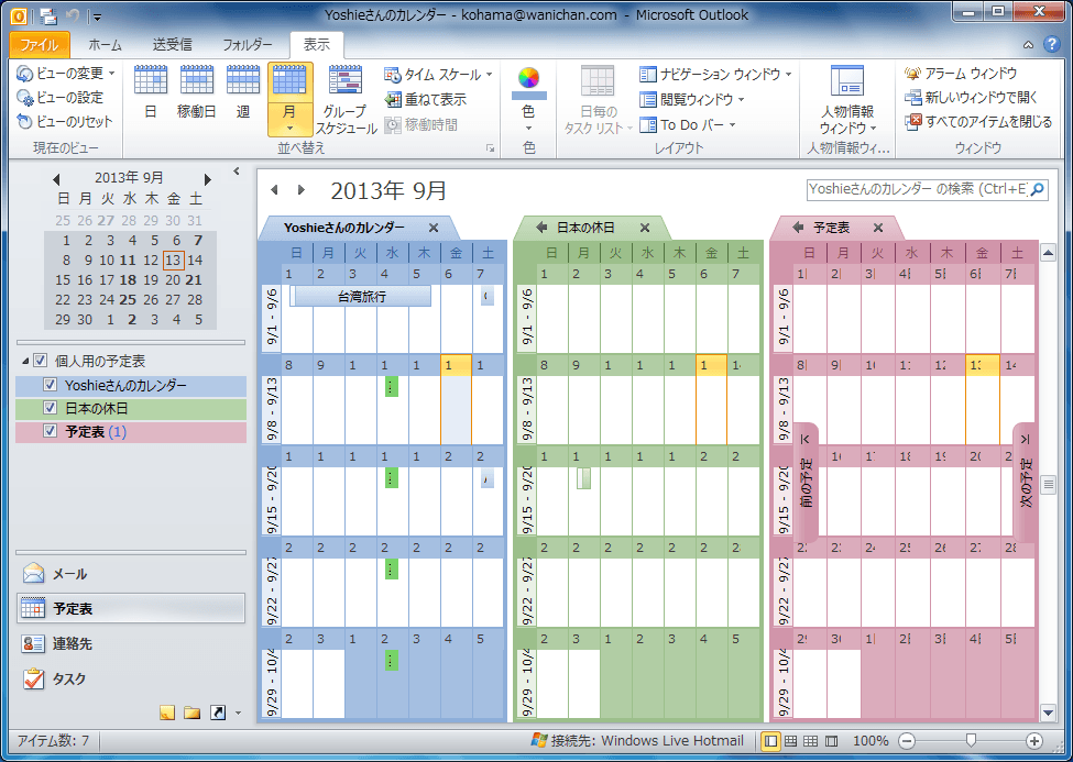 Outlook.com(Windows Live)カレンダーには、自分のカレンダーの他に日本の休日カレンダーが別に存在します。これらのカレンダーをOutlook 2010で同期すると、Outlook 2010ではそれぞれ独立した予定表として認識されます。
