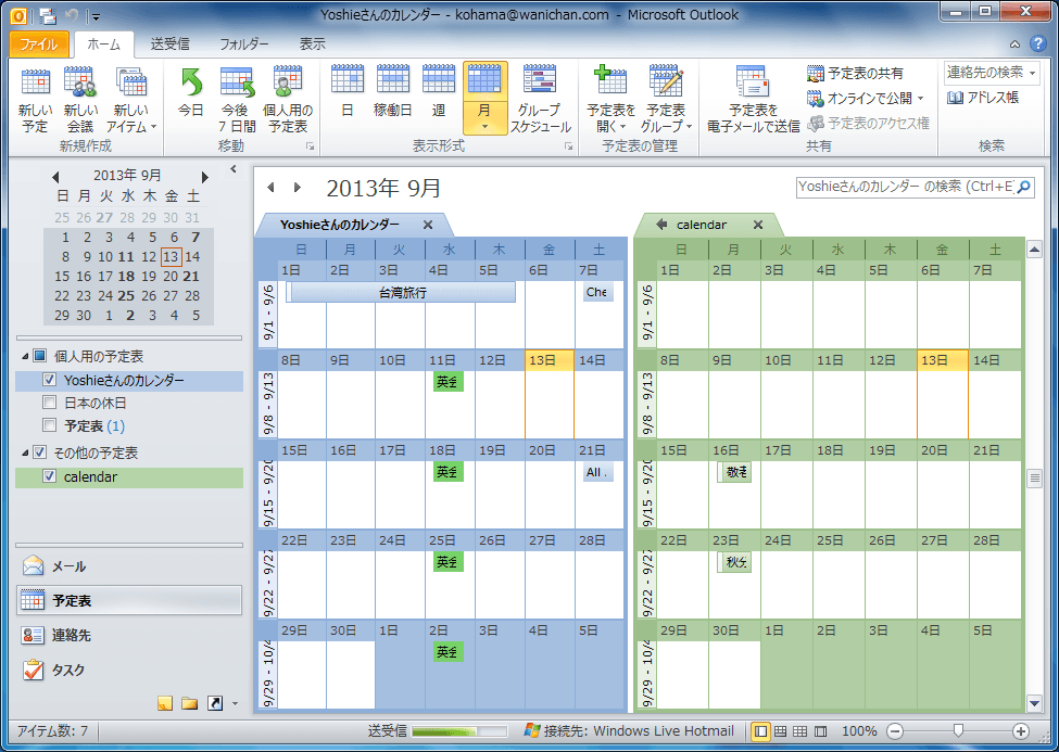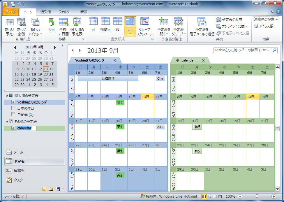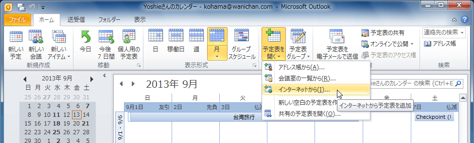 インターネットから予定表を開いたとき、[その他の予定表]ツリーに「calender」が追加されます。あとで名前を変更することが可能です。