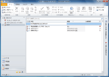 Outlook 2010でタスクを開くと、[マイ タスク]のなかに「ToDoバーのタスクリスト」と「タスク」の2種類存在します。ToDoバーのタスクリストとは、フラグが付けられたすべてのアイテムのリストも含まれます。タスク以外のコンポーネント(メールや予定表とか)でフラグを付けると、ToDoバーのタスクリストに追加されます。なお、ToDoバーのタスクリストには、追加されたタスクアイテムもリストされます。
