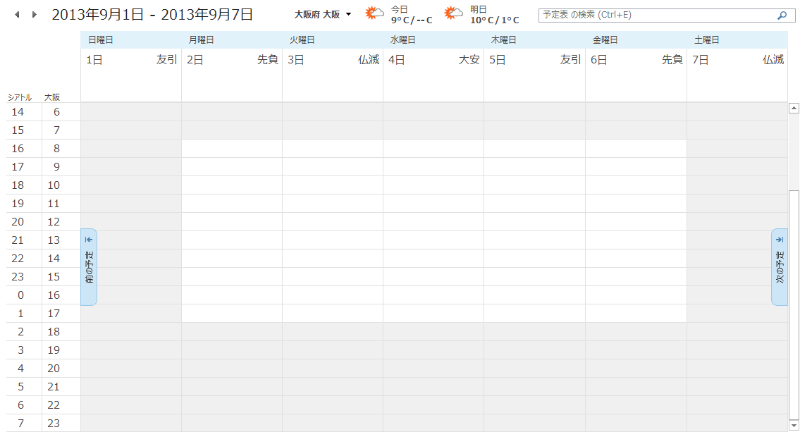 たびたび海外出張がある人の場合、Outlook 2013の予定表に別のタイムゾーンを追加表示することで、日本時間ともう一方のタイムゾーンが併記されるようになります。また、二つのタイムゾーンを設定することで、タイムゾーンを簡単に切り替えることが可能になります。