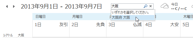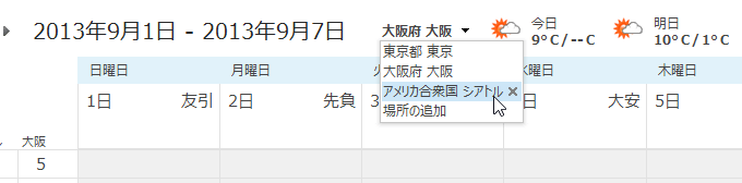 - 天気予報の場所の▼をクリックして、一覧から切り替えたい場所を選択します。
