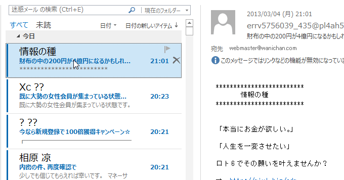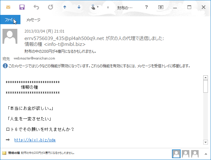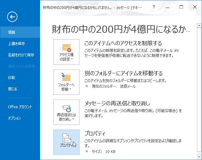 - プロパティを表示したいメッセージをダブルクリックして開きます。閲覧ウィンドウで表示ではなく、メッセージアイテムを別ウィンドウで開きます。