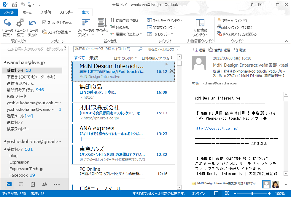 Outlook 2010まで既定で予定表やTo Do リストが画面の右側に配置されていましたが、Outlook 2013から既定でオフ(非表示)になりました。Outlook 2013では[To Do バー]に該当し、「予定表」「連絡先」「タスク」の3つの要素を表示できます。