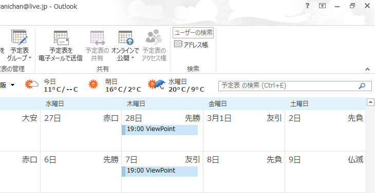 予定表でも予定表一覧画面の右上に検索ボックスが配置されています。