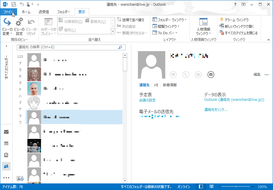 - 印刷したい連絡先を表示して[ファイル]タブを選択します。