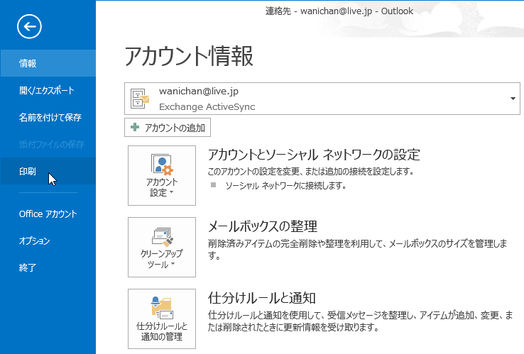 Outlookアイテムの印刷