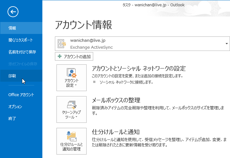 Outlookアイテムの印刷