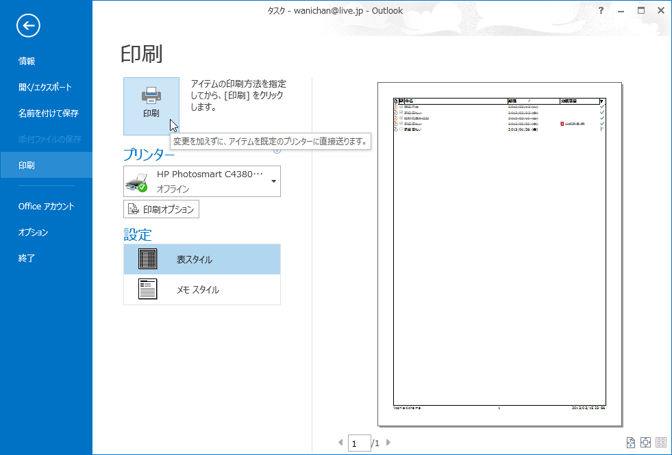 タスクの一覧を印刷する