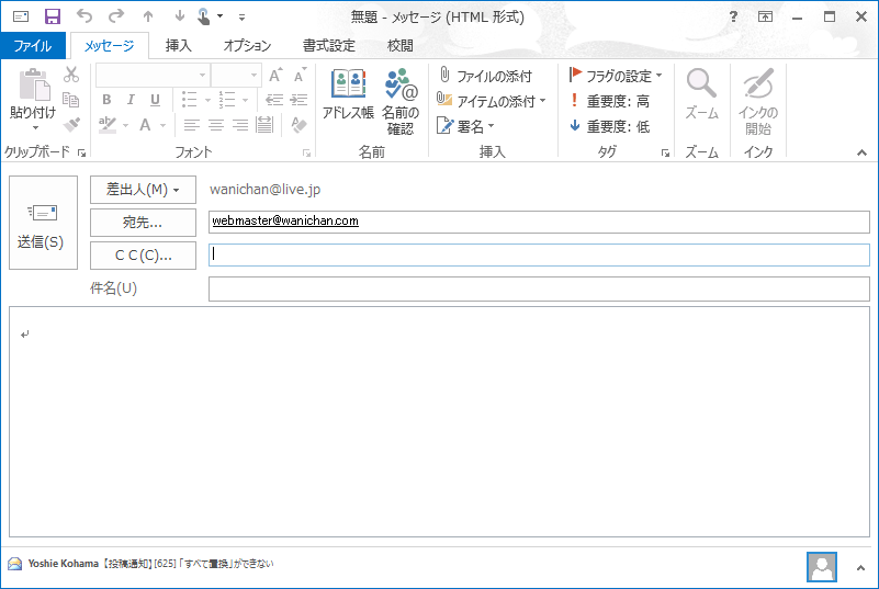 - メッセージウィンドウの[宛先]フィールドから直接電子メールアドレスを入力します。