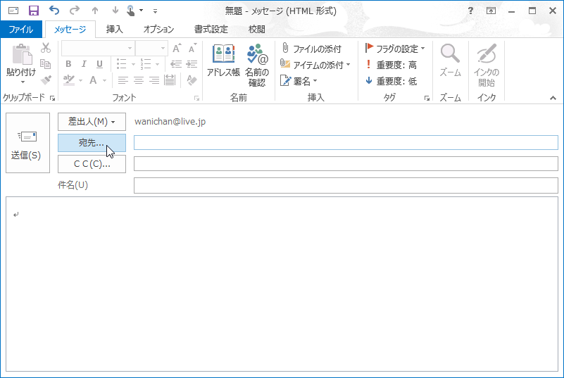 - [宛先]ボタンをクリックします。