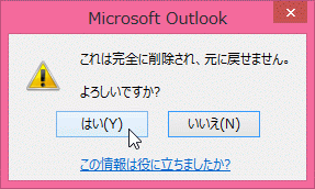 - 「これは完全に削除され、元に戻せません。よろしいですか?」という確認メッセージが表示されます。削除する場合は[はい]ボタンをクリックします。