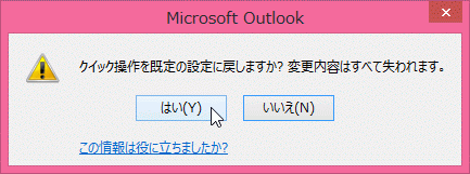 - [クイック操作の管理]ダイアログボックスで[既定にリセット]ボタンをクリックします。