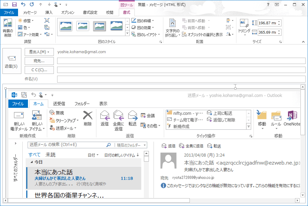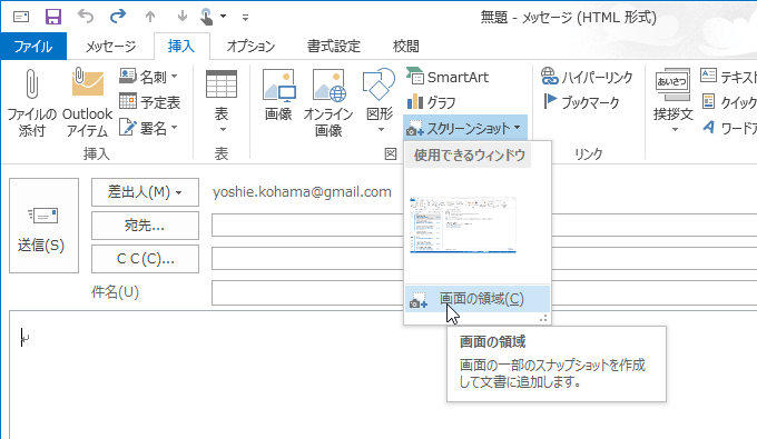 他のウィンドウまたはその一部分をスクリーンショットして図として挿入することができます。ただし、最小化されているウィンドウは対象になりません。