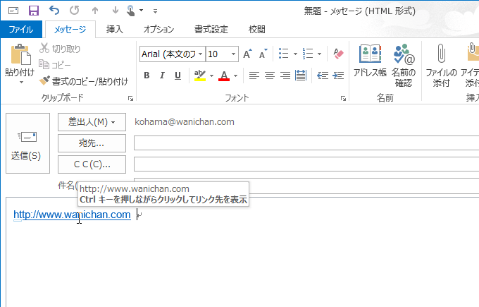 ホームページアドレスを入力すると、自動的にその文字列にそのアドレスへのリンクが生成されます。
