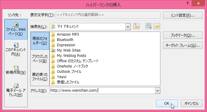 そのアドレスへのハイパーリンク文字に変化した