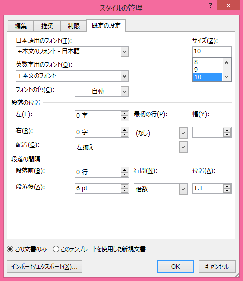 既定では使用できるようにチェックが外れています。この状態では、段落の一部分の文字列に対して見出しや表題などのリンクスタイルを適用することができますが、[リンクされたスタイルを使用不可にする]ことによって、選択した文字列のみ適用することができなくなり、その段落全体に適用されることになります。