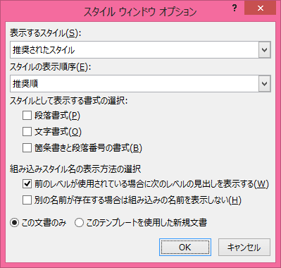 このリンクをクリックすると、[スタイルウィンドウオプション]ダイアログボックスが表示されます。表示するスタイルを選択できます。