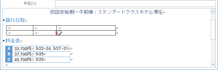 - 行を描画するには、間に左から右へドラッグして描画します。