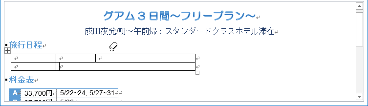 に変わります。[表]をクリックし、[罫線を引く]をクリックすると