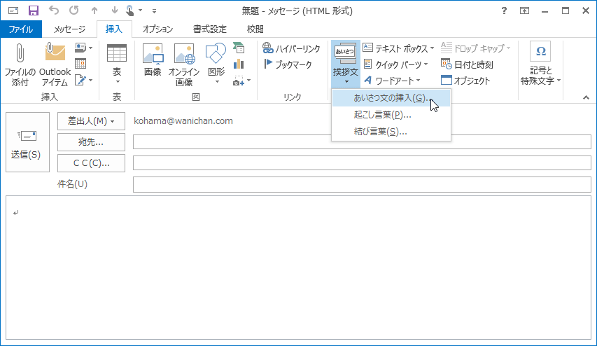あいさつ文を挿入するには