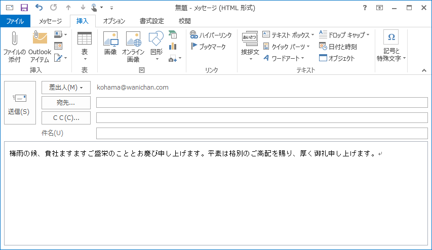 - あいさつ文が挿入されました。