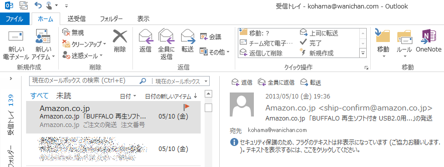 - 受信トレイに存在する該当するメッセージにフラグが設定されました。