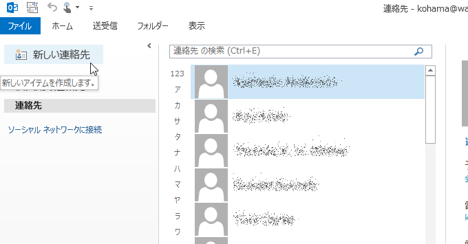 - 連絡先ビューの左上の[新しい連絡先]をクリックします。