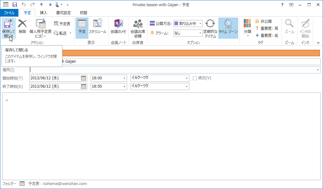 - アラームをなしにしたい予定をダブルクリックして開きます。