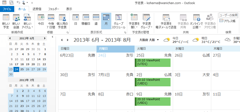 - 予定表を開き、該当する会議アイテムを選択します。
