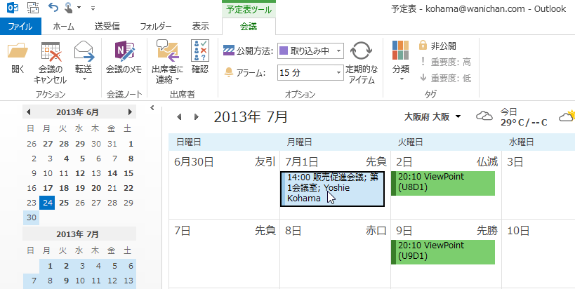 - 会議アイテムから予定アイテムに変更され、出席者の情報が削除されました。