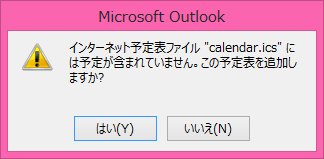 - この予定表を追加しますか?と聞かれたら[はい]ボタンをクリックします。