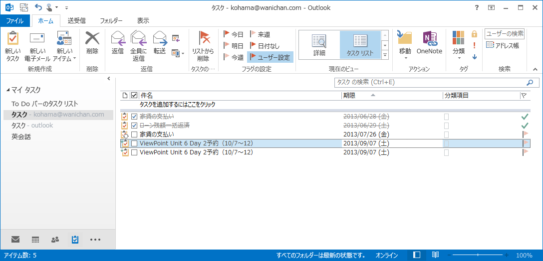 - [ホーム]タブの[タスクの管理]グループの[リストから削除]をクリックします。