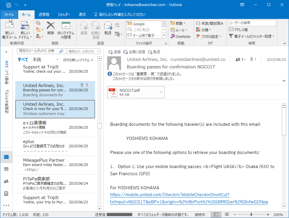 - 複数のメッセージを選択して、[ファイル]タブを選択します。