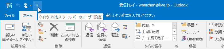 - クイックアクセスツールバーの右側の▼をクリックします。