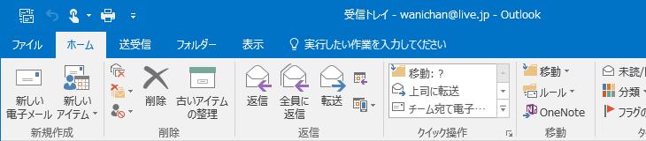 よく利用するコマンドが並ぶクイックアクセスツールバーの初期設定では、[すべてのフォルダーを送受信][元に戻す][タッチ/マウス モードの切り替え]の3つのボタンが表示されています。タッチパネル非対応の場合は、[すべてのフォルダーを送受信][元に戻す]の2つのみです。クイックアクセスツールバーに簡単に追加できるコマンドは以下の通りです。