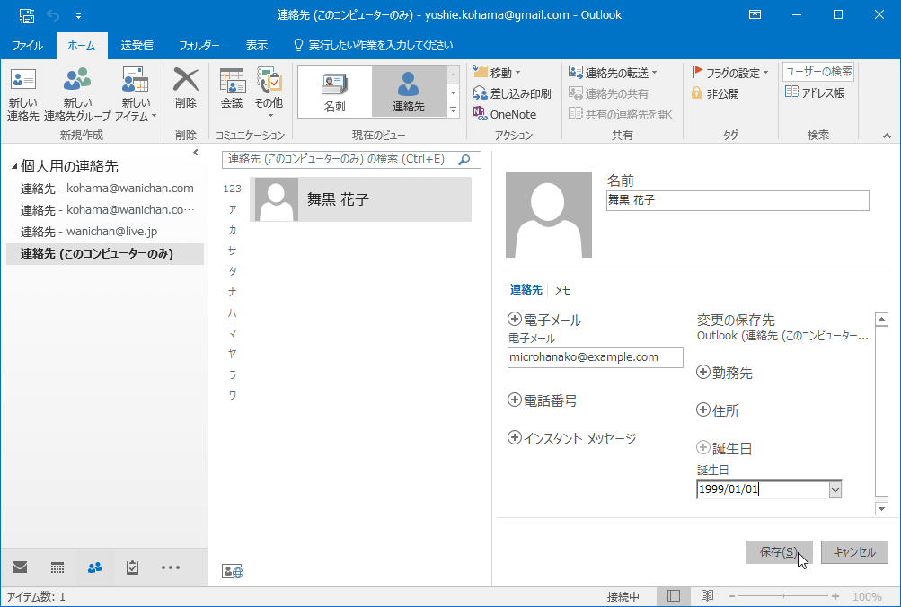 連絡先の新規作成と編集