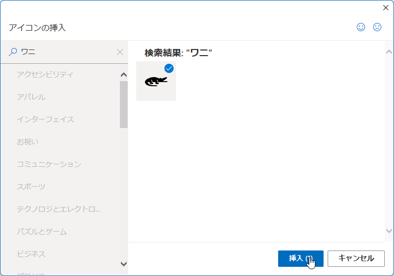 - 挿入したいアイコンにチェックを付けて[挿入]ボタンをクリックします。