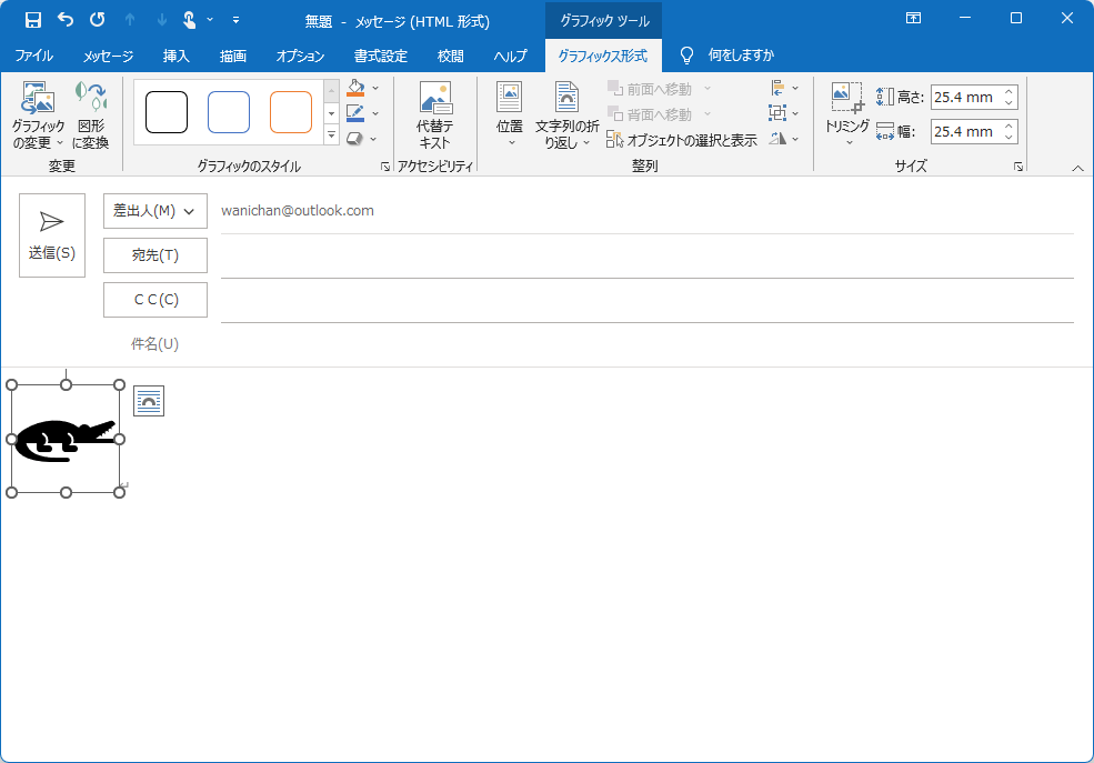 記号を使用して、視覚的にコミュニケーションをするためのアイコンを挿入するには、[挿入]タブの[図]グループの[アイコン]をクリックして、[アイコン]ウィンドウ一覧から挿入したいアイコンを選択します。送信されたメッセージ内のアイコンは、画像ファイルに変換されます。