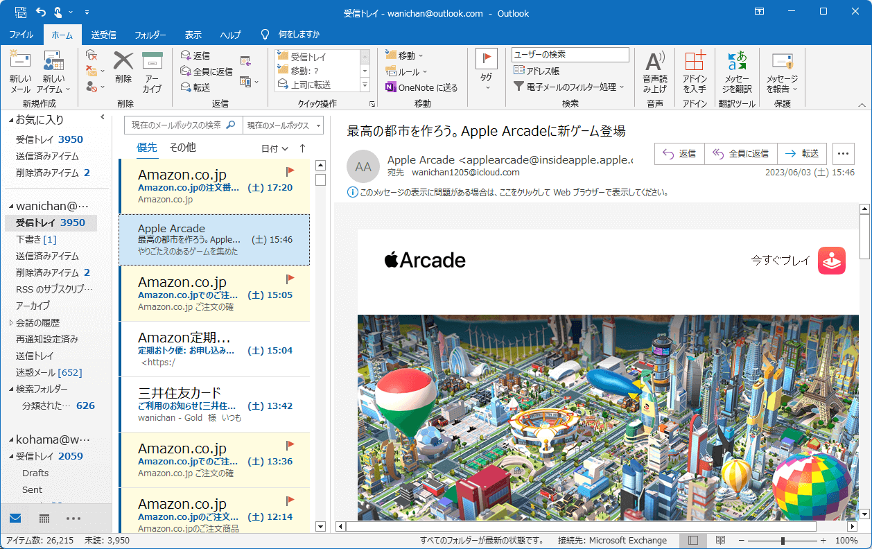 別のメールアカウントのフォルダーにコピー