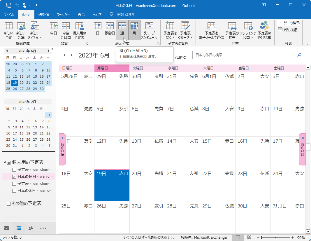 予定表での既定のタイムスケールは30分です。タイムスケールを変更することによって、細かな時間設定が思い通りに行えるようになります。タイムスケールの単位は60分、30分、15分、10分、6分、そして5分が最小単位です。[表示]タブをクリックし、[タイムスケール]をクリックして、一覧から変更したいタイムスケールを選択します。