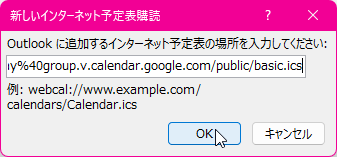 - [新しいインターネット予定表購読]ダイアログボックスに