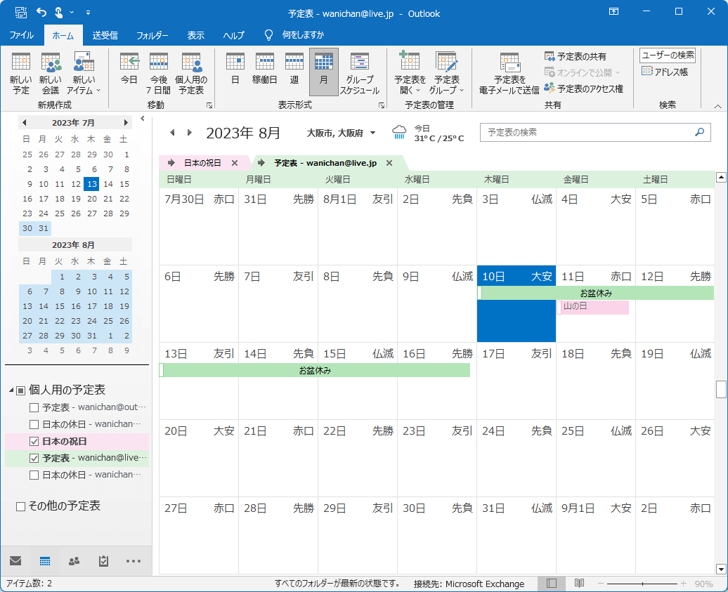 - 複数の日にまたがるイベントが作成されました。