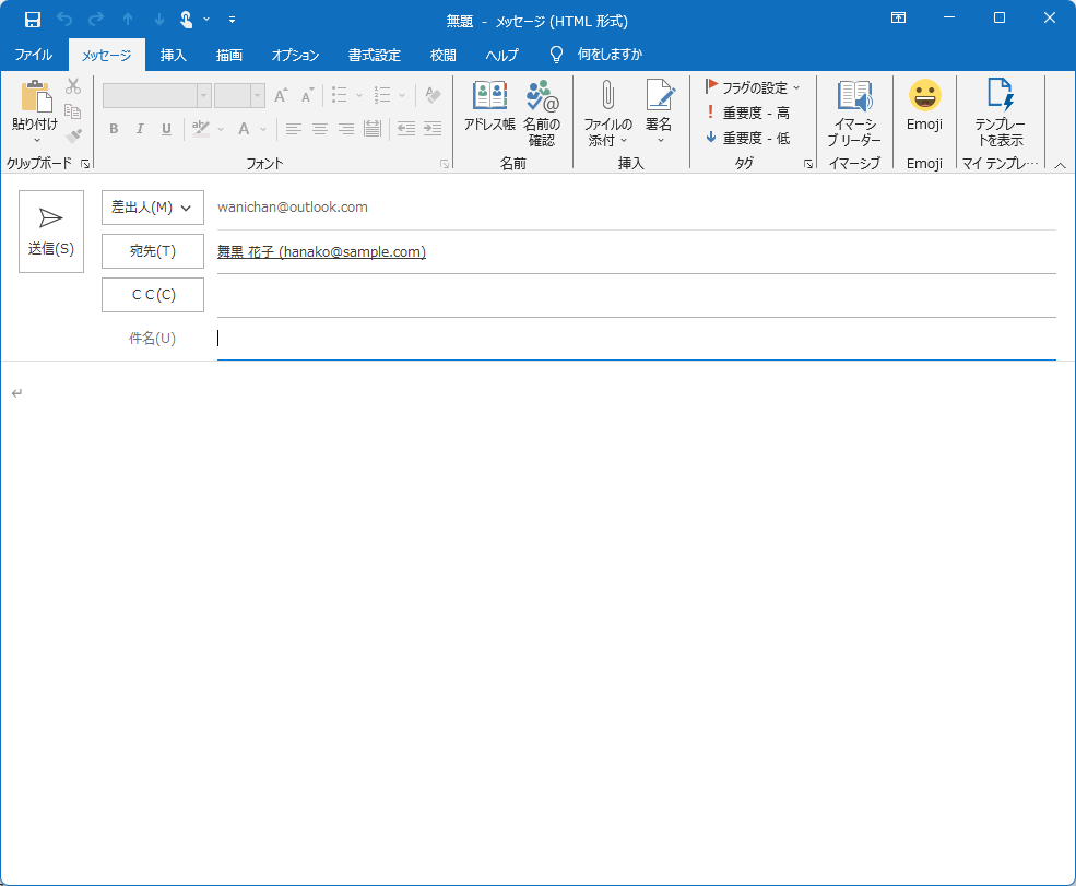 - 選択した連絡先宛ての新しいメッセージウィンドウが開きました。