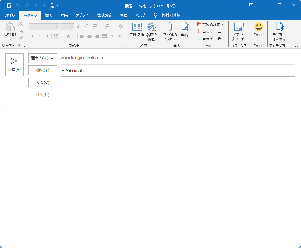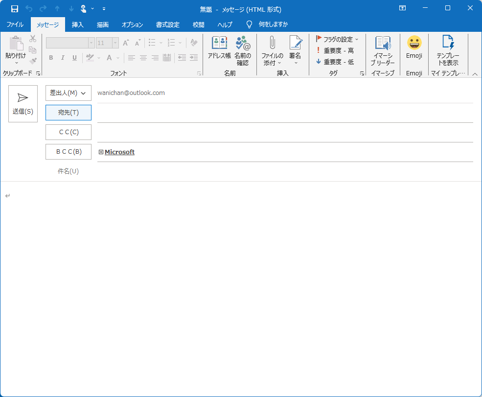 新しいメッセージウィンドウからグループをBCCに送信するには、BCCに連絡先グループを指定します。