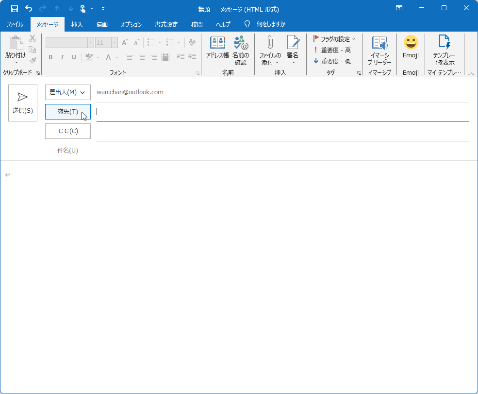 - [宛先]または[CC]ボタンをクリックします。