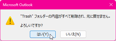 - 削除済みフォルダーに移動してもよいかの確認メッセージが表示されるので、[はい]ボタンをクリックします。